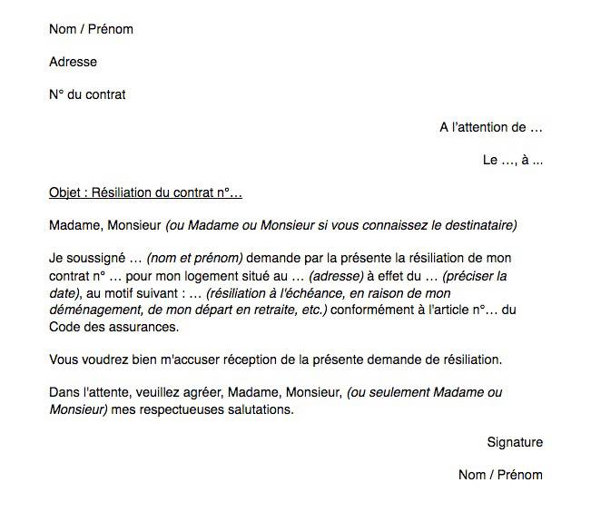 Modèle : Résiliation du contrat d’assurance habitation