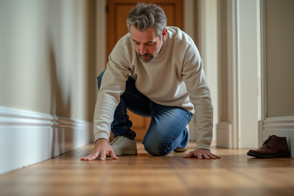 Dans cette zone de transit, il faut agir vite et précisément. Passez régulièrement une serpillière microfibre à peine humide : elle limite la poussière entre les lames et garde le bois souple. Pour un grincement qui s’incruste, glissez des cales de dilatation en périphérie. Discrètes, elles absorbent la pression et redonnent de la stabilité au sol. Si malgré tout le bruit persiste, vérifiez la première lame ou envisagez un léger ragréage pour renforcer le support.
