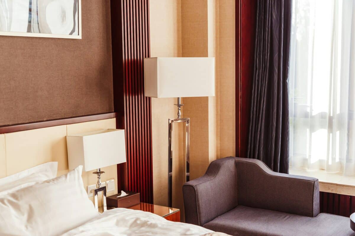 Dans une chambre, l’éclairage doit créer une atmosphère apaisante propice au repos. Optez pour des lampadaires à abat-jour doux diffusant une lumière tamisée, de préférence sur pied ou en applique murale pour plus de liberté de mouvement. Préférez des coloris naturels comme le bois laqué ou le rotin tressé.